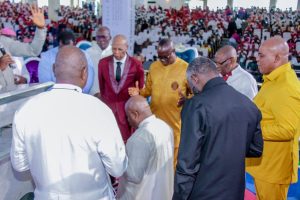 In his sermon, Lead Pastor of The Refined People’s Assembly, Daddy-Ken Bitere, spoke on the faithfulness of God, urging continued acknowledgement of God as the source of success and progress. He prayed for sustained divine guidance for the governor and the state.